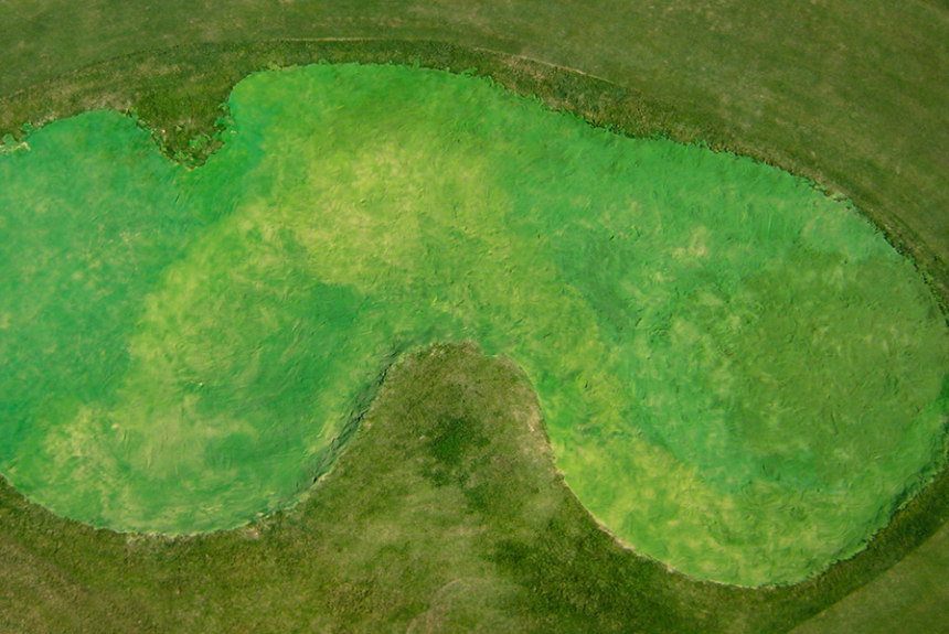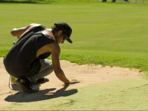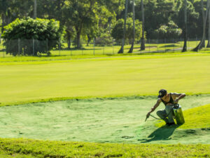 Dorado Beach Resort’s east golf course’s periphery. Artistic intervention on one of the sand traps, covered entirely with organic green dye.