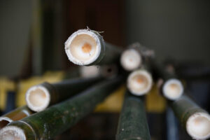 Renacer Áureo is based on a mathematical equation to achieve a seemingly casual composition but which in reality has been very well calculated. Raymond Cruz uses bamboo to create a sculpture based on the Golden Section with an organic twist that communicates it with the vegetation. The sculptures large proportions are achieved with thin pillars that appear to be weak but are actually extremely resistant; the result is a kind of visual poem to the strength of nature that sometimes appears subtle and other times violent.