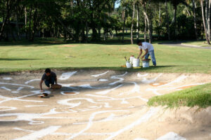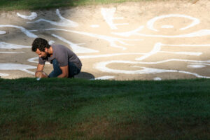 Patterns are what mostly characterize the Suárez’s artworks. The abstract visual vocabulary in Trampa de Arena had the appearance of umbilical cords that connect the sand in the trap with the grass of the golf course. These continuous lines sometimes even revealed bird-like shapes; contemplating that birds hint at the idea of direction and, according to the Suárez, they were the first ones to witness the project.