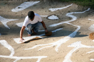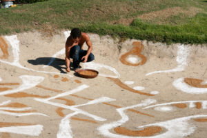 Afterwards, the surface was traced using a stick similar to a coa (pre-Columbian digging stick) while simultaneously moistening the sand to create precise lines that outlined the composition.