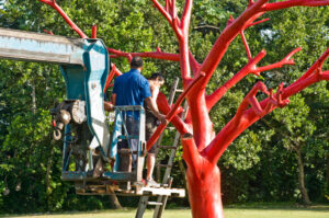 Born in Puerto Rico with a bachelor’s degree in Plastic Arts from the University of Puerto Rico and graduate studies at the Academia San Carlos, Universidad Autonoma de Mexico; is a dry tree painted red located in the middle of a pond. The presence of this tree is filled with mythological, archetypal, but above all theological references for its purpose is to alarm us from the past of the future. It is about a call to reflection as asserted by the artist about our endangered natural environment; “The human being has disobeyed and is at the verge of expulsion from his only paradise”