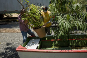 Taking Smithson’s concept of the floating island and making it his own, Korean artist Kim Myeongbeom created Tree Boat. Previously done in Seoul (Korea), Chicago (US), and now in Dorado (Puerto Rico), the ongoing project consists of a small boat with native plants and/or trees planted on it. Kim’s Tree Boat in Dorado had a “Ficus Longifolia and a Tabebuia Rosea creating a lavish garden” comprised with an evolving rock towers were each stone represented a personal wish; based on the popular tradition in the mountainous regions of Korea were along the paths one can find stone towers in which the stones also represent a wish.From the type of boat that was chosen to the plants that were used the project’s cultural representation circled around immigration. The boat that was used is called yola. This boat is commonly employed by people from adjacent islands (Cuba and Dominican Republic) to crossover illegally to Puerto Rico. The tree, although it might evoke stability and permanence, meanwhile, represented the individual “who affected by unforeseeable circumstances, decides to leave home”.