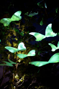 Inspired by the history of Clara Livingston, Vaccaro finds muse to create the digital scenery that is Wind Chime for Clara. The work is a tribute to wind and Clara’s imprint on Puerto Rico. Clara Livingston was one of the pioneer women in aviation and she created the first private airport in the island at Dorado. The sculpture included sensor technology to calculate the wind’s speed. This technology stimulated the projected video source and the sounds of the wind chimes after nightfall. As a tribute, the wind chimes, which were installed in grounds that witnessed Livingston’s achievements, allow the rebirth of Clara and the airport to be possible.